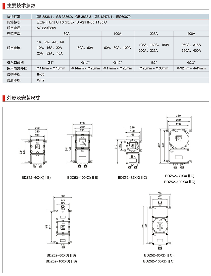 BDz52系列防爆断路器(IIB、IIC、Ex tD)